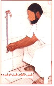 ، ثم يمسح أذنيه بما بقي على يديه من ماء الرأس [ أنظر صورة 7 ] .